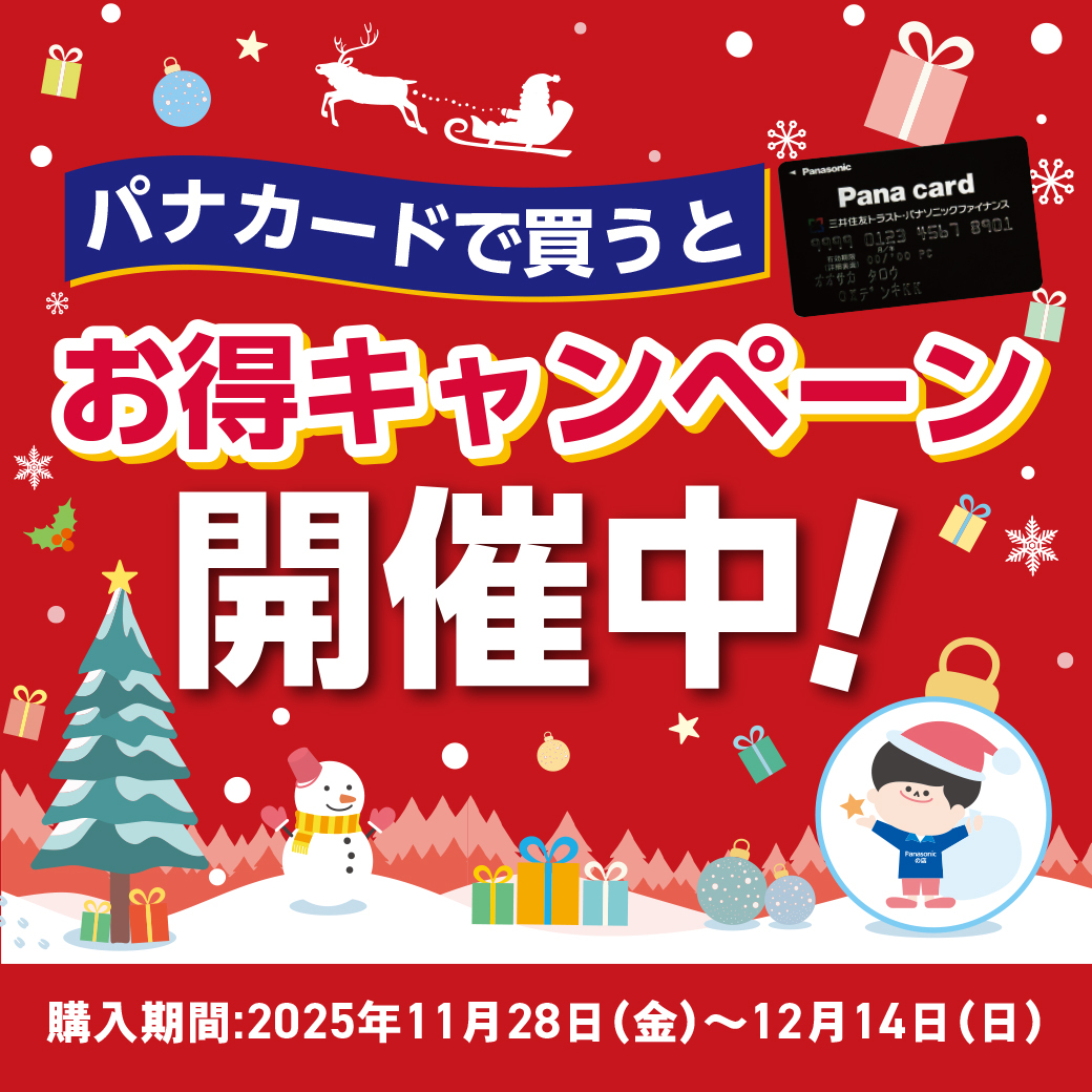 キャンペーン期間中に対象商品をパナカードでご購入いただくと、お客様にキャッシュバックがされるキャンペーン実施中です