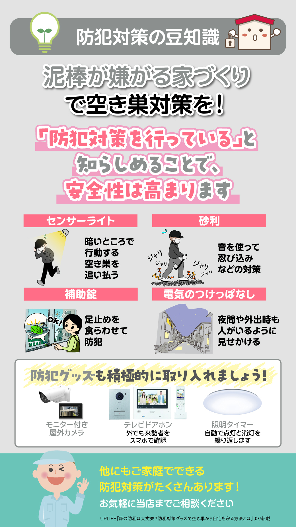 被害にあわないためにもご自分で出来る「防犯対策」を行いましょう。