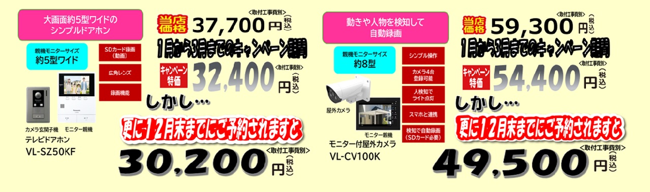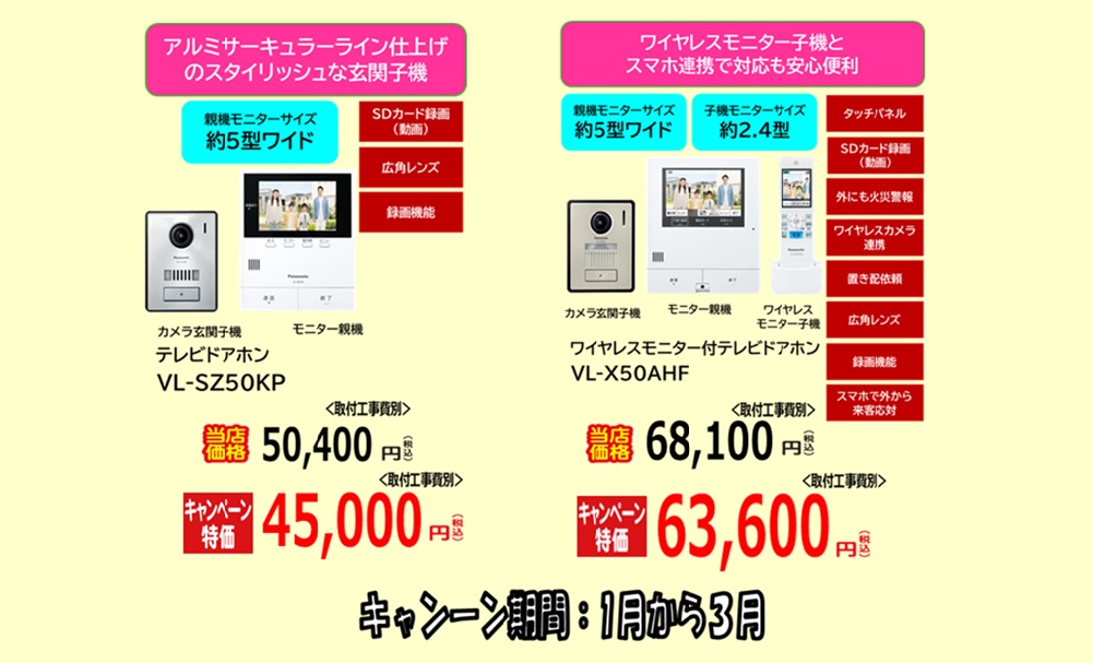 パナスポットグループでは、2026年1月から2026年3月までドアホン、カメラのキャンペーンを行います‼️