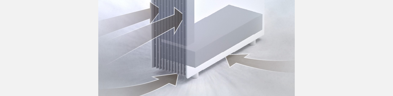 スリムかつ大口径のファンで、左右から効率よく吸引。