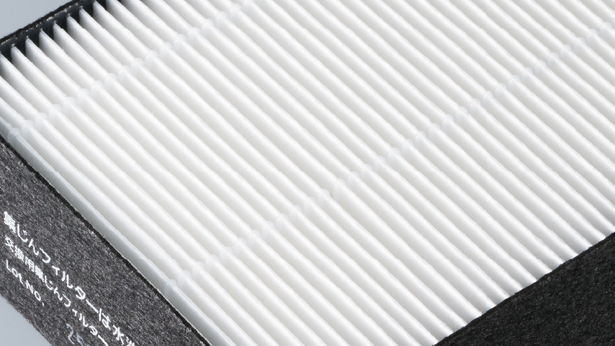 【静電HEPAフィルター】何重にも折りたたまれたフィルターで、空気中の微粒子を捕集。