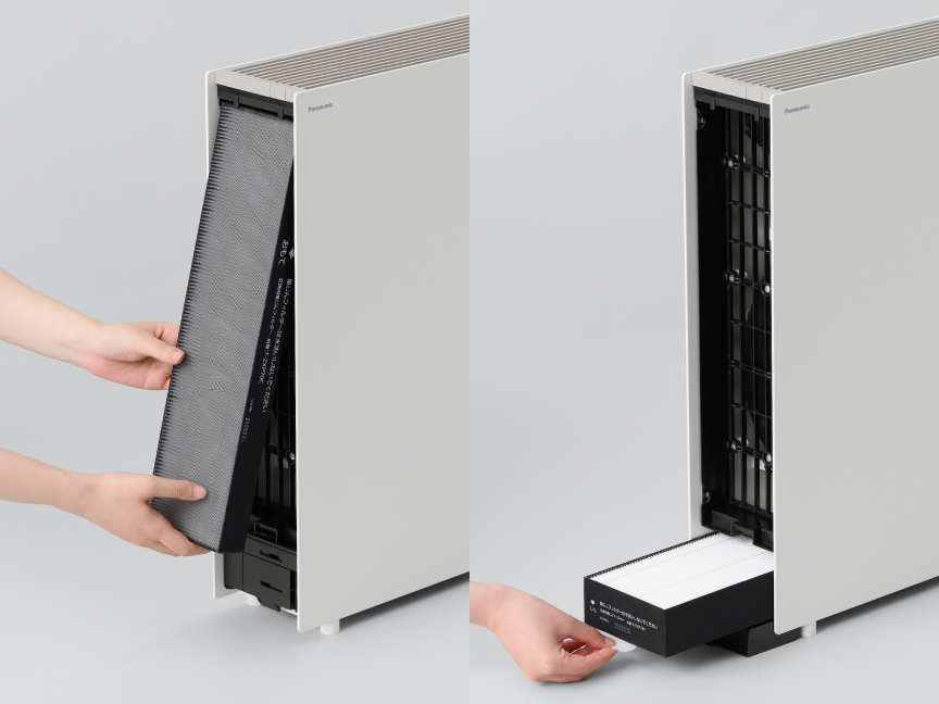 お手入れは、すべて前面から。本体を動かさずにフィルターのお掃除がスムーズに行えます。